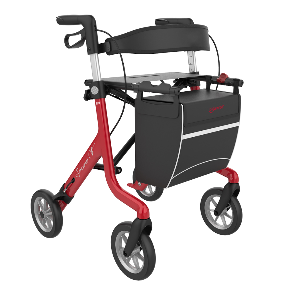 Unser Birkenrot® Rollator Streamer ist ein Extremes-Leichgewicht. Leichter als alle anderen Rollatoren. Der Carbon Rollator lässt sich mit einem Handgriff schnell und simpel zusammenfalten. Ausgestattet mit einer grossen, geschlossenen Tasche und vielen praktischen Funktionen, wie zum Beispiel höhenverstellbaren, ergonomischen Griffen und einer Gehhilfenhalterung bietet er eine ideale Unterstützung beim Gehen und ermöglicht Ihnen viele aktive sowie selbständige Spaziergänge und Einkäufe.